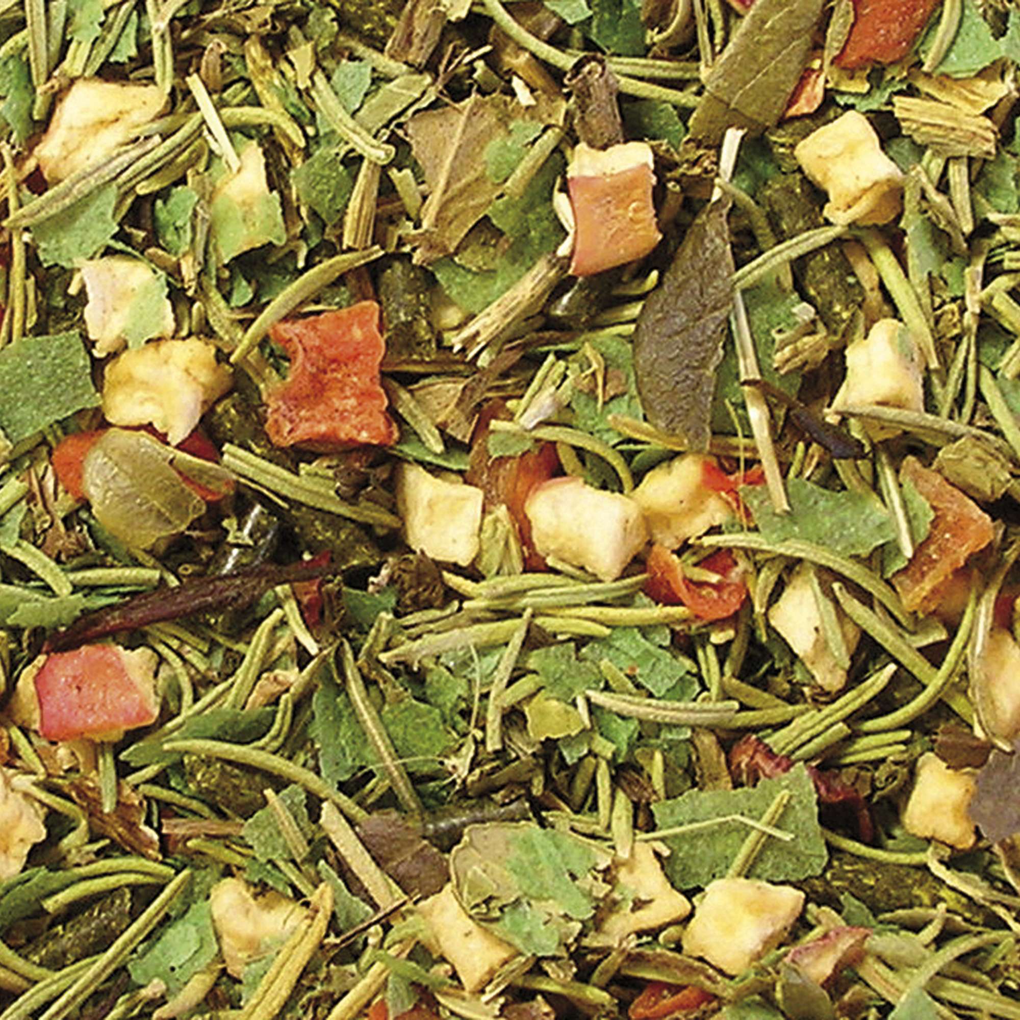 Ingredientes: alfalfa, otras forrajeras verdes, algas, fruta y verdura secas, romero, flores de ibisco, hoja de arándano rojo.