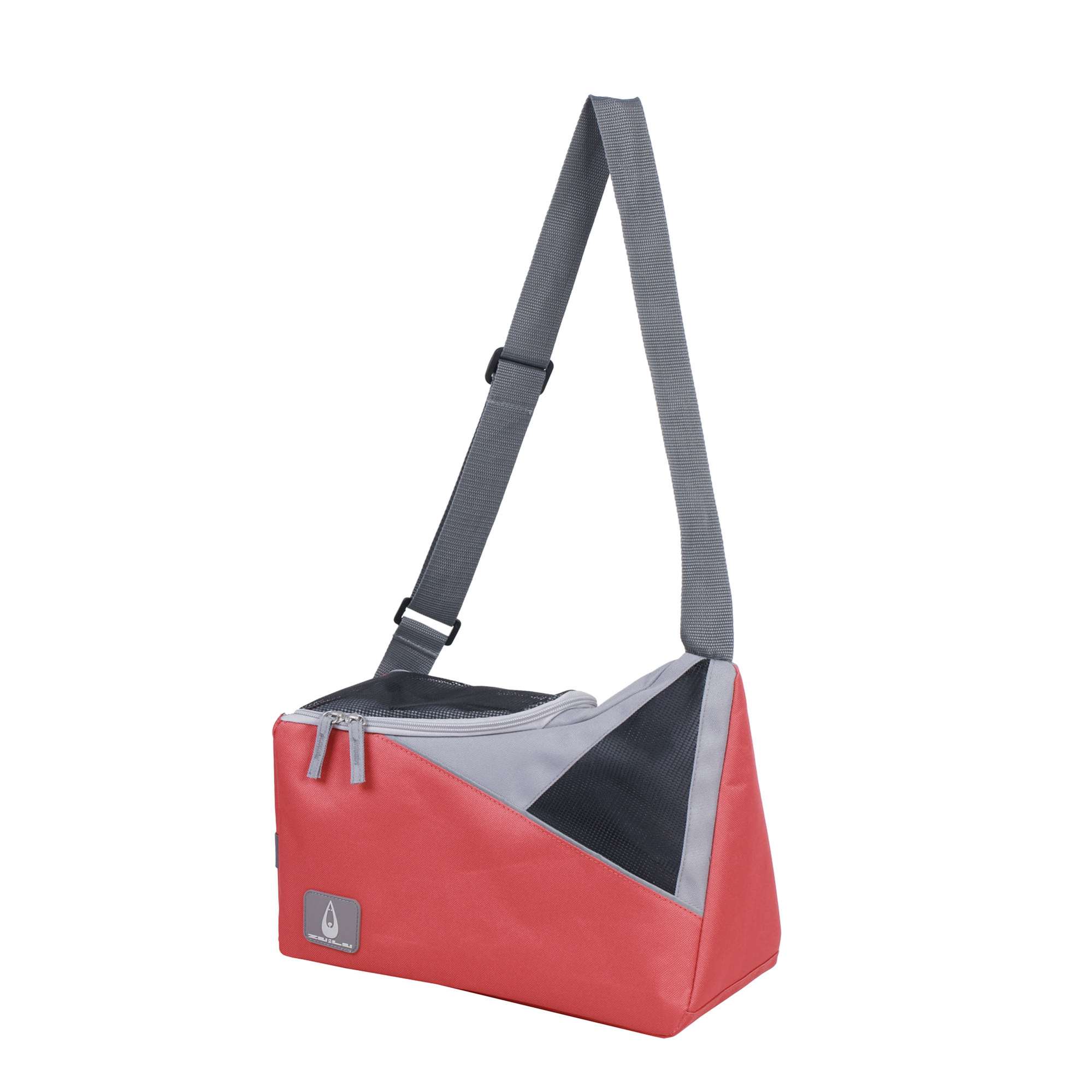 - La ventana superior del acoplamiento puede permanecer cerrada o fija en la posición abierta para permitir que una mascota saque su cabeza hacia fuera. La correa ajustable larga permite llevar el bolso en un hombro o en diagonal.