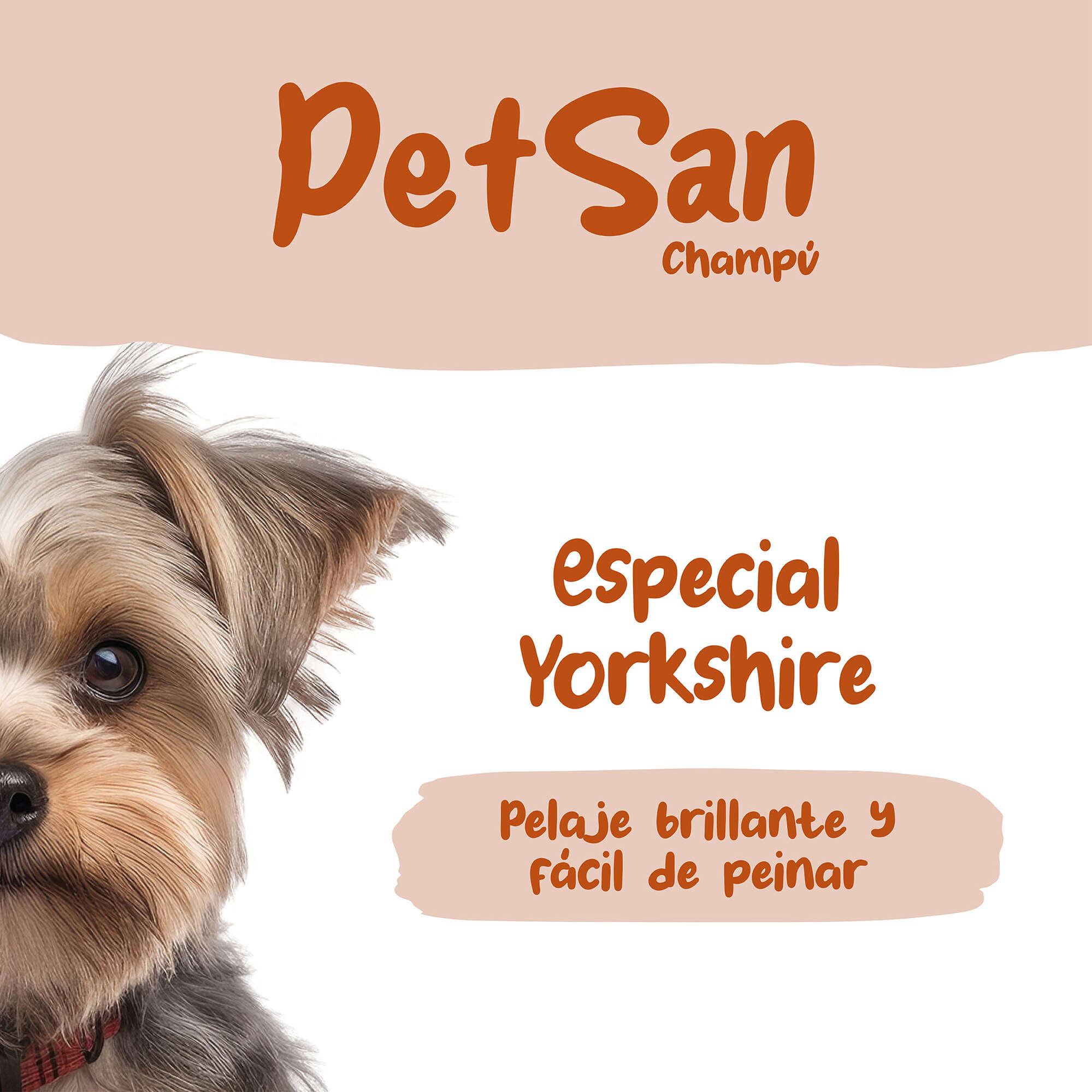 El champú especial Yorkshire PetSan está especialmente formulado e indicado para mantener en óptimas condiciones la piel y el pelo característicos de esta razas de pelo largo y fino como los Yorkshire, dejando su pelaje limpio, brillante y sedoso. Este champú con fragancia a lavanda de pH neutro súper concentrado deja el pelo con una leve fragancia durante mayor tiempo.