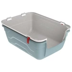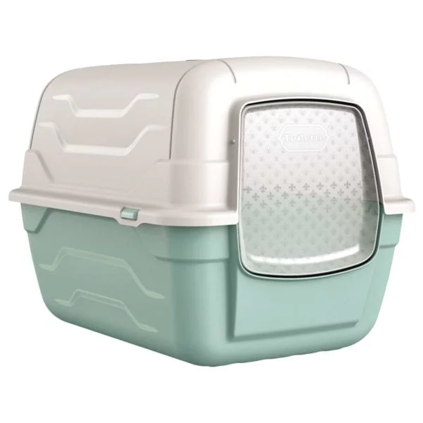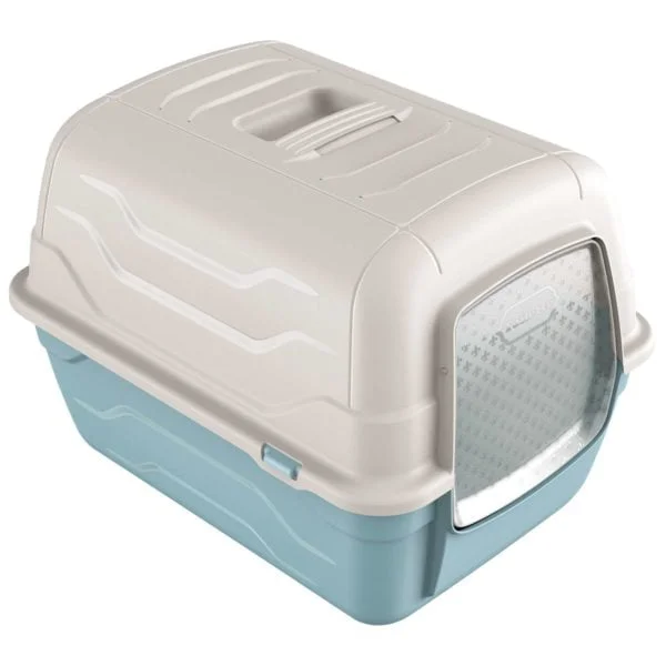 Gatera plástica con puerta abatible y apertura del techo. Se puede abrir la parte superior hacia atrás (sin necesidad de quitarla completamente) para una fácil limpieza y desinfección, luego simplemente se trae hacia delante para volverla a cerrar. Tiene un asa muy resistente para su cómodo transporte, dispone de un habitáculo para el filtro y la palita de aseo. Está fabricada con materiales de alta calidad.