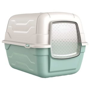 Gatera plástica con puerta abatible y apertura del techo. Se puede abrir la parte superior hacia atrás (sin necesidad de quitarla completamente) para una fácil limpieza y desinfección, luego simplemente se trae hacia delante para volverla a cerrar. Tiene un asa muy resistente para su cómodo transporte, dispone de  un habitáculo para el filtro y la palita de aseo. Está fabricada con materiales de alta calidad.