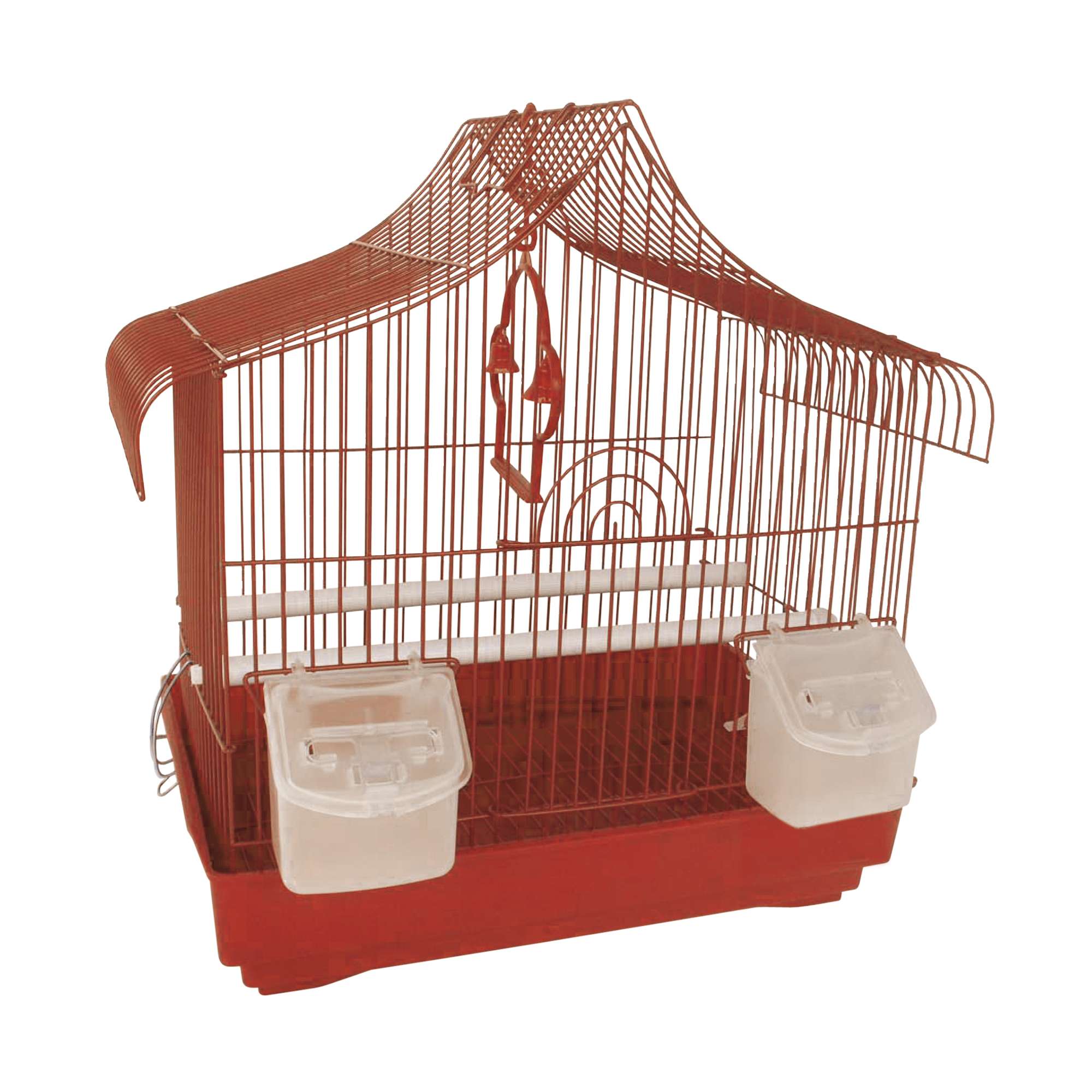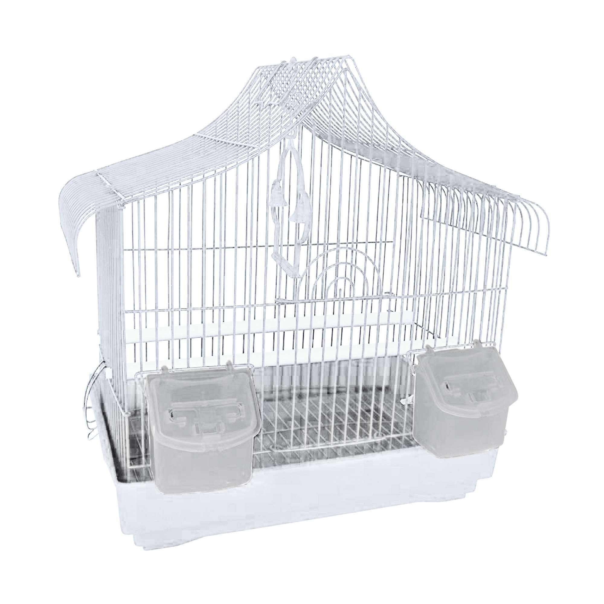 Preciosa jaula con techo a dos aguas y terminación redondeada. Está disponible en varios colores y tiene el alambre de 1.8 milímetros de diámetro (un 50% más grueso que en versiones anteriores).