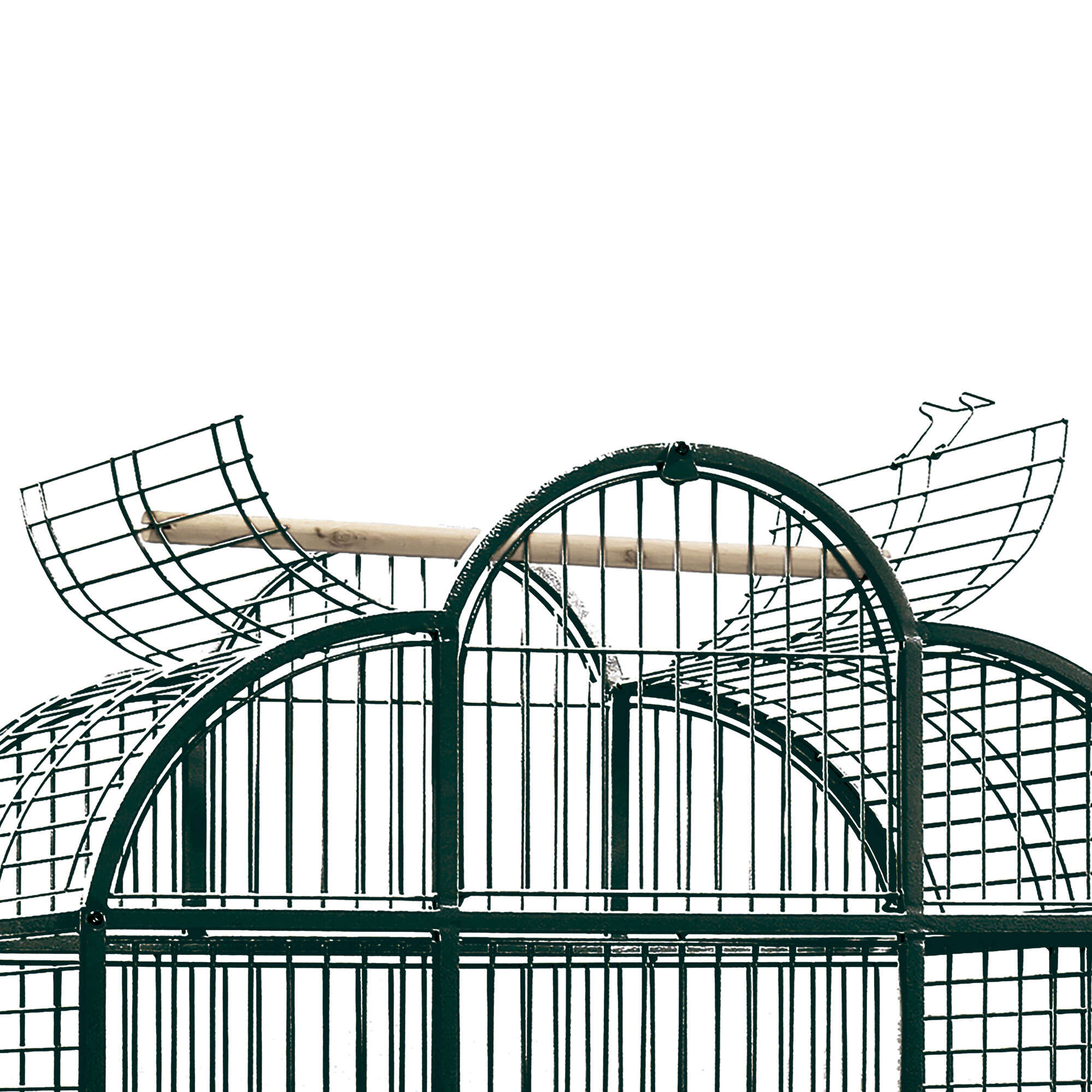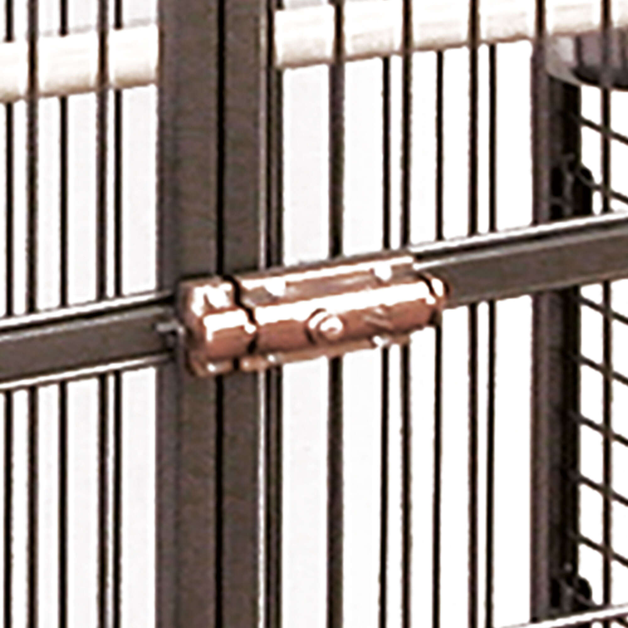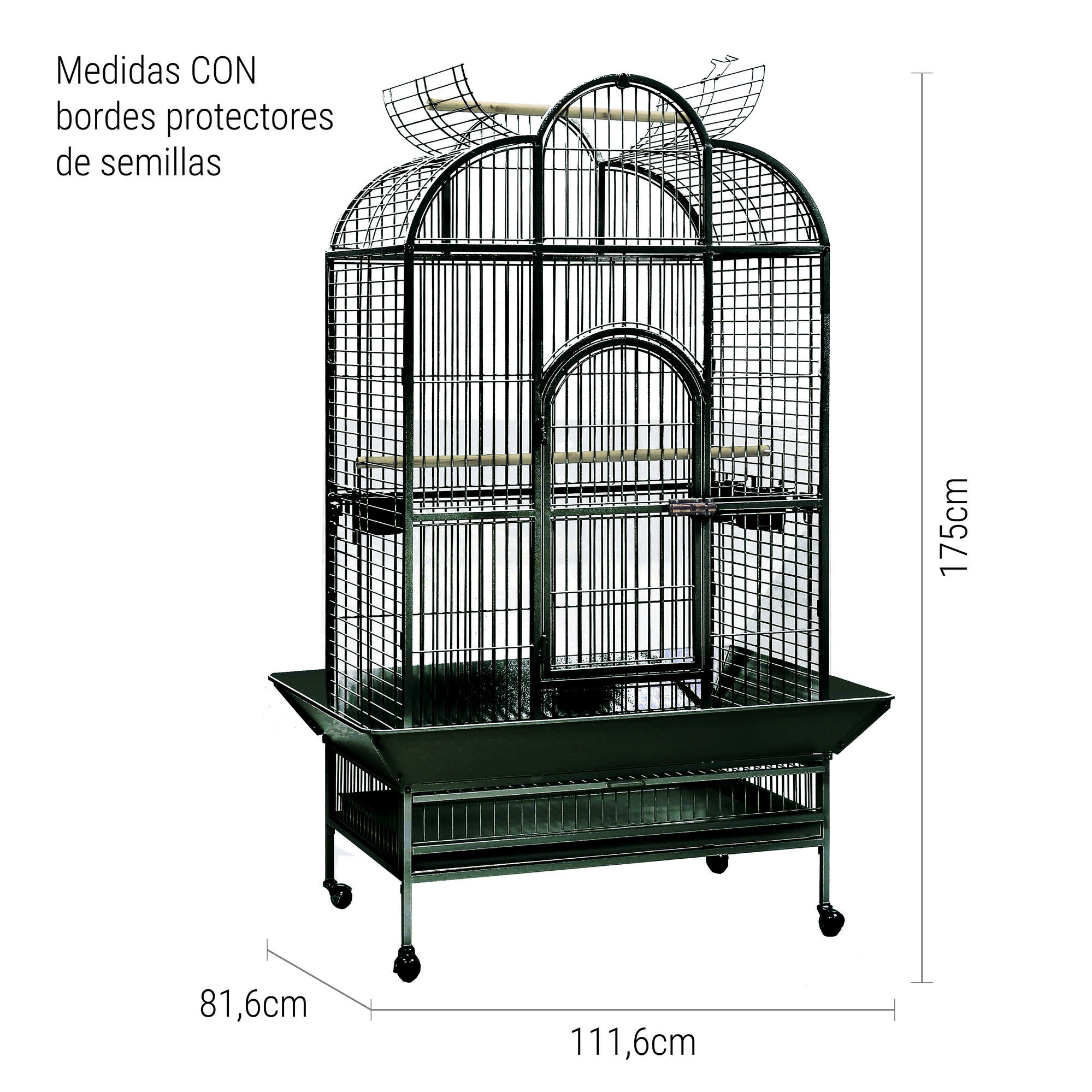 Preciosa jaula con techo abatible y con bandeja inferior extraíble para una fácil limpieza y desinfección.