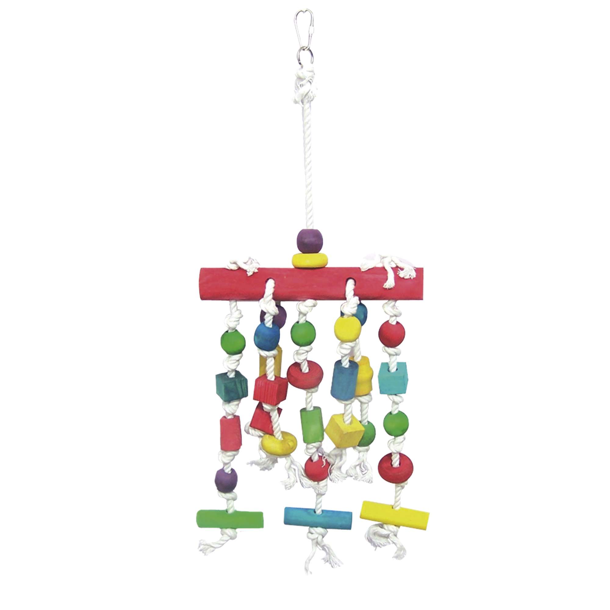 Juguete de madera en cascadas con cuentas multicolor para pájaros (40 cm)