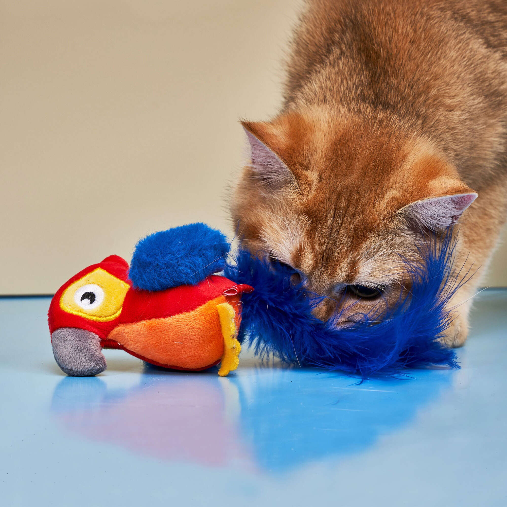 El loro de peluche Melody Chaser está diseñado para estimular el instinto natural de caza del gato, proporcionando una experiencia de juego interactiva que evita el aburrimiento y fomenta la actividad diaria.