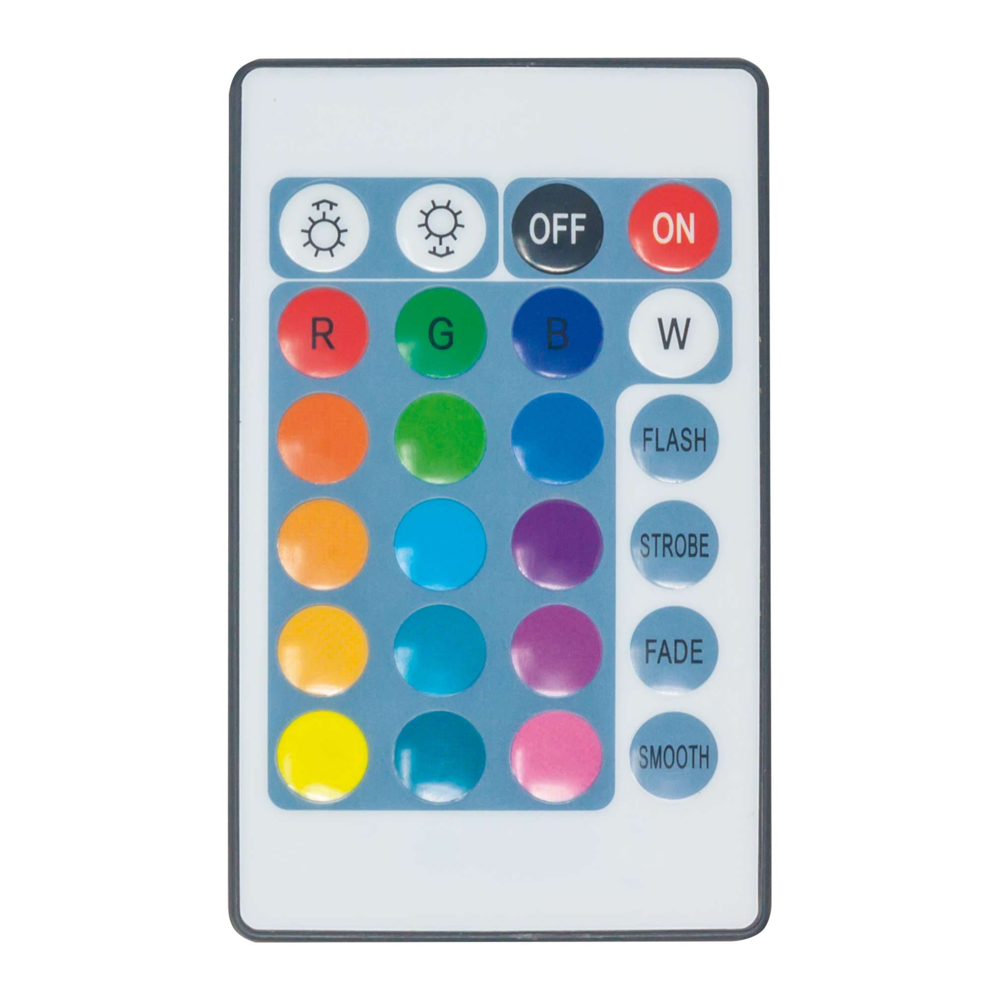 Con su mando a distancia podemos cambiar el color de la luz emitida por la pantalla o su intensidad.