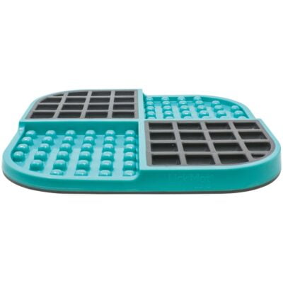 Los comederos LickiMat están fabricadas con látex, se limpian fácilmente, son antideslizantes y tienen un tamaño de 20 cm x 20 cm. Es perfecta para perros que comen demasiado rápido y con ansia. Puede utilizarse a modo de juguete interactivo para perros que necesitan enriquecimiento ambiental, que tienen problemas de ansiedad o con conductas destructivas. Fomenta un comportamiento tranquilo en situaciones estresantes, como los fuegos artificiales, tormentas, las estancias fuera de casa, visitas, etc. Les mantendrá totalmente distraídos y centrados en una actividad relajante.