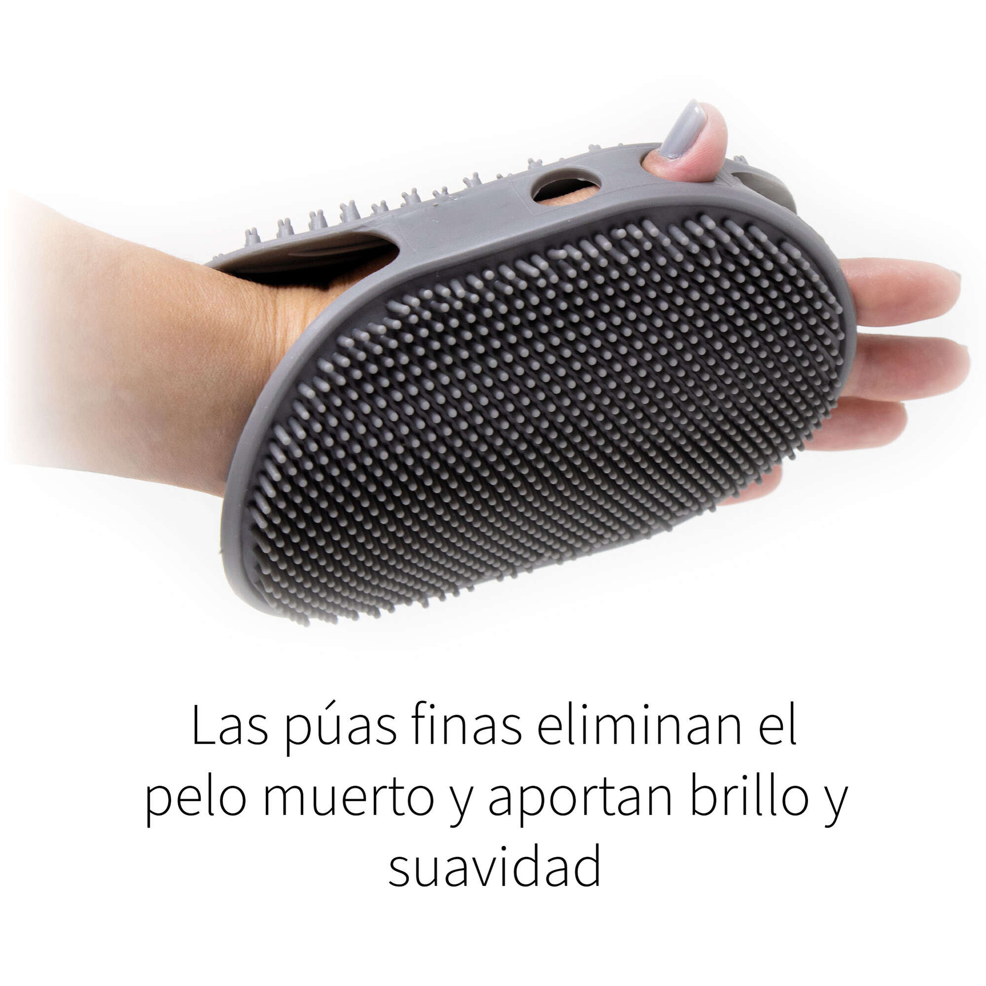 Manopla ajustable a la palma de la mano que permite el cepillado de tu mascota, las púas finas eliminan el pelo muerto y aportan brillo y suavidad. Los puntos gruesos masajean la piel y estimulan la circulación sanguínea sobre el cabello. Utilizar en movimientos circulares sobre el pelaje.