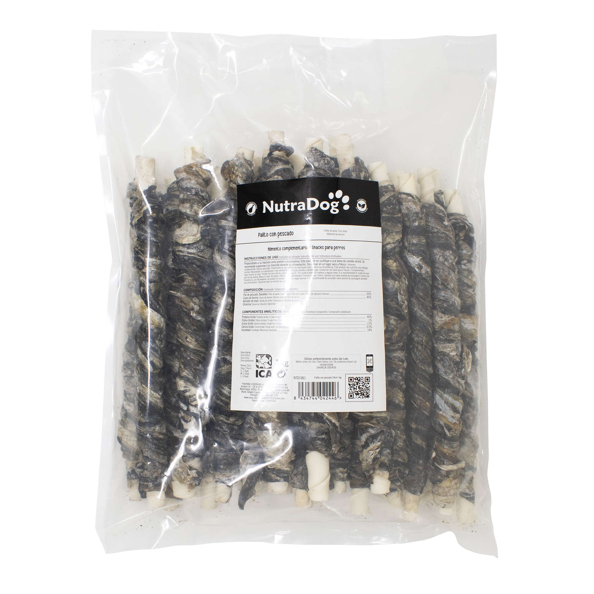 Deliciosos palitos con pescado de NutraDog para tu perro, alto contenido en proteínas de alta calidad sin colorantes artificiales, un delicioso snack de textura firme para que tu mascota muerda y mastique durante mucho más tiempo.