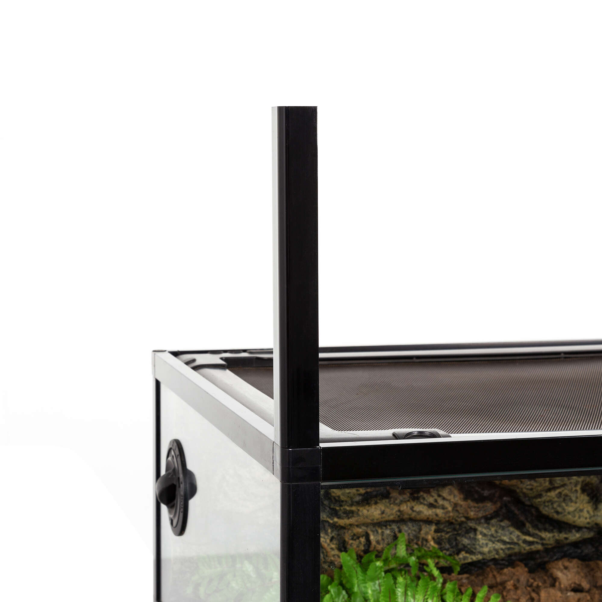 Se pueden apilar hasta un máximo de 3 terrarios con 2 juegos de postes y 1 juego de ruedas universales.