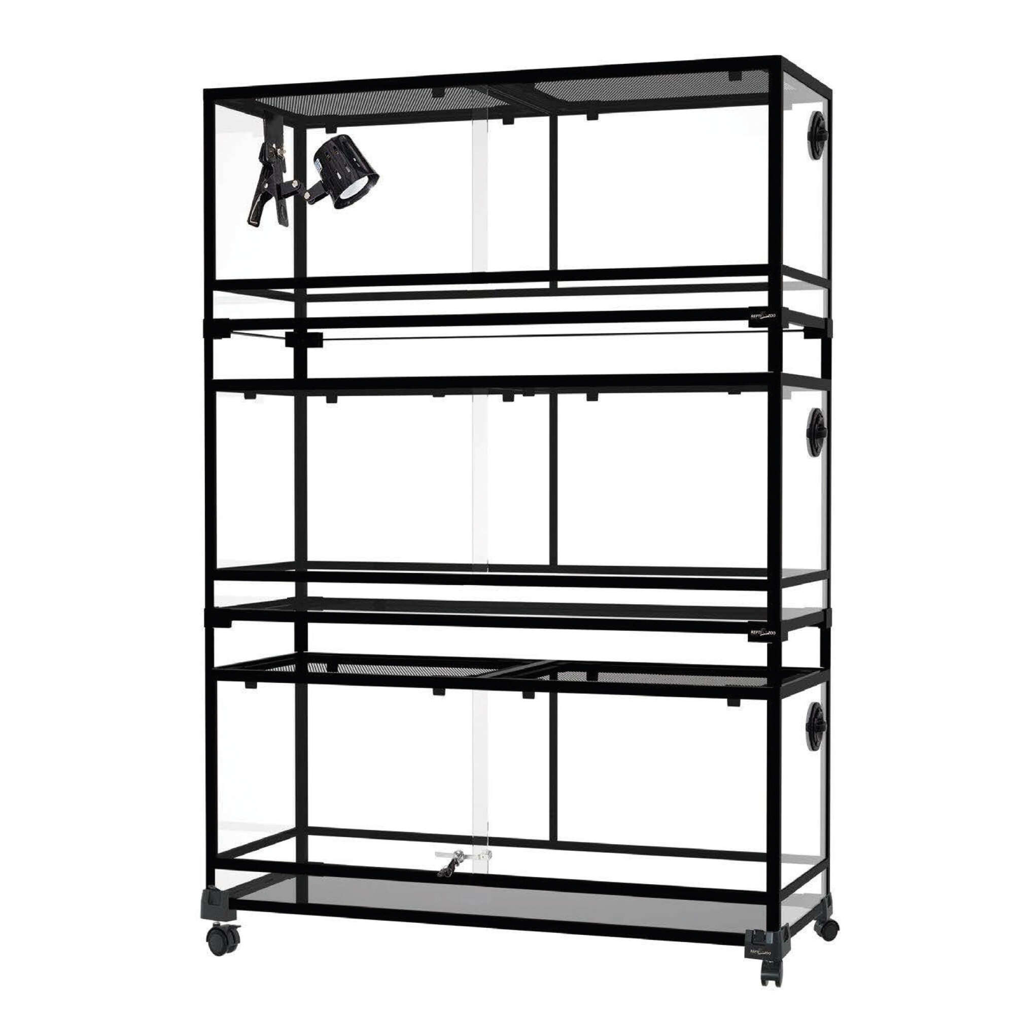 Set de 4 ruedas diseñadas especialmente para la serie de terrarios Knock Down. Fabricadas con materiales resistentes, estas ruedas permiten mover fácilmente hasta 3 terrarios apilados (hasta 90 kg de peso total).