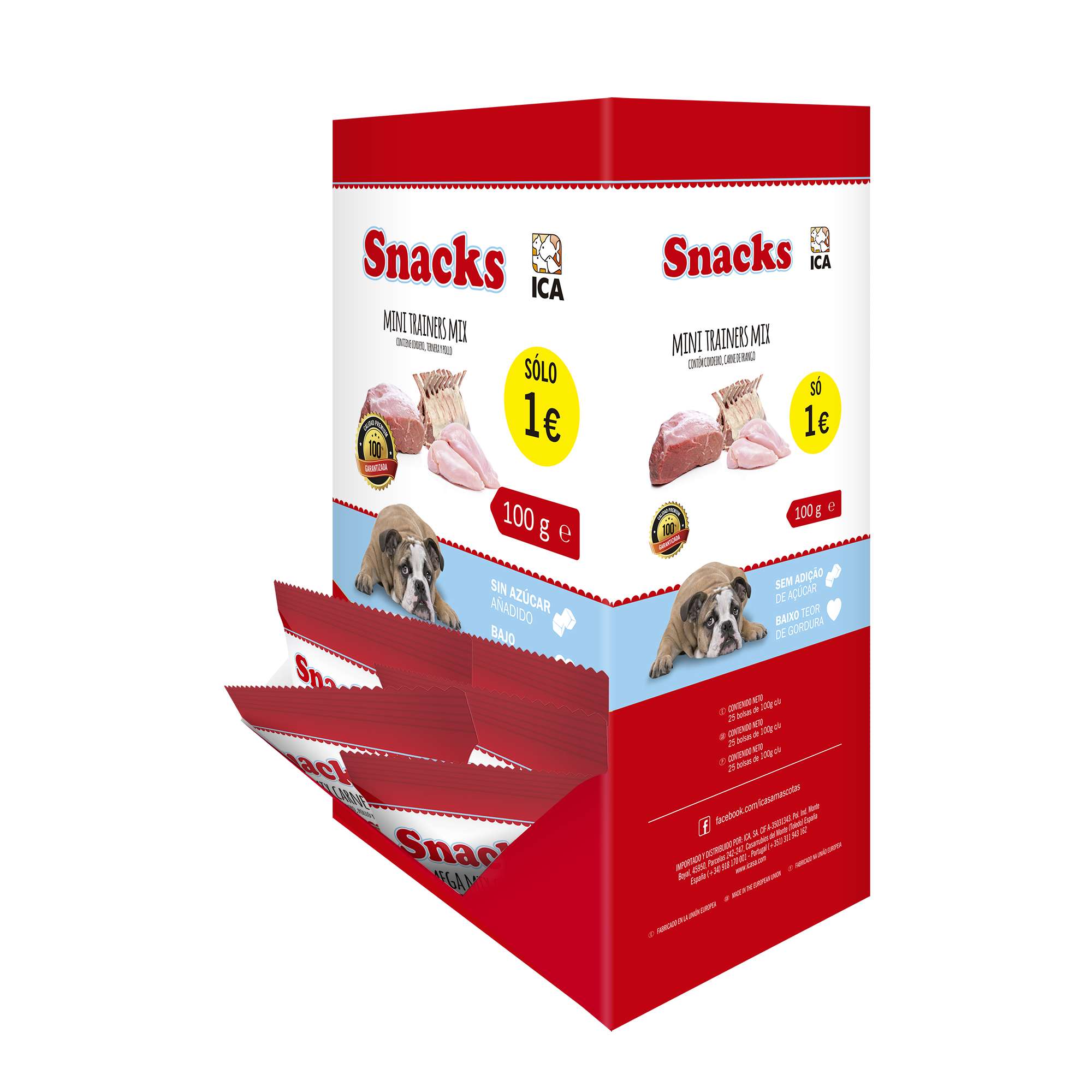 Snacks Mini Trainers Mix. Es el complemento alimenticio ideal para sus mascotas. Sin azúcares añadidos y bajo contenido en grasas.