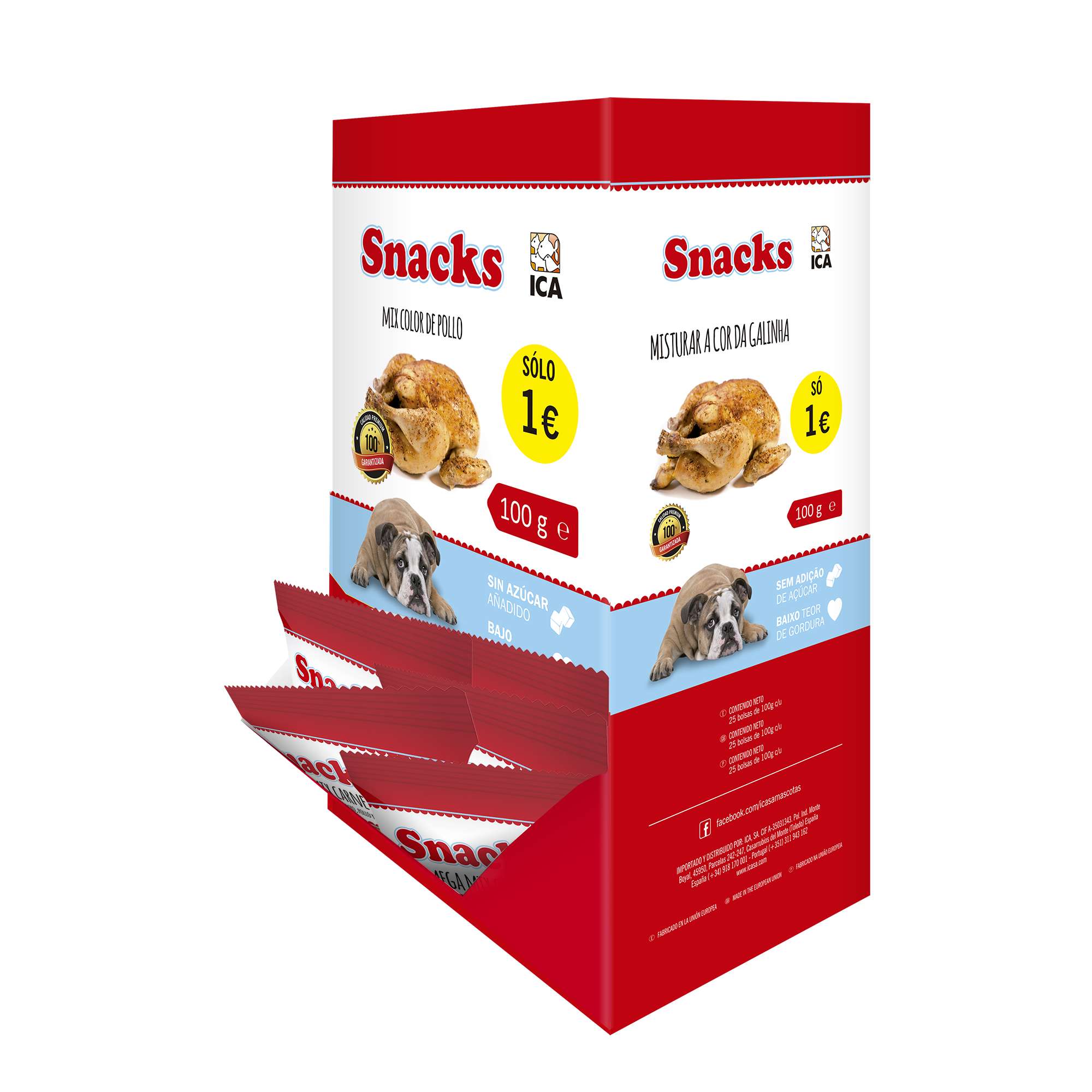 Snacks Mix Color de Pollo. Es el complemento alimenticio ideal para sus mascotas. Sin azúcares añadidos y bajo contenido en grasas.