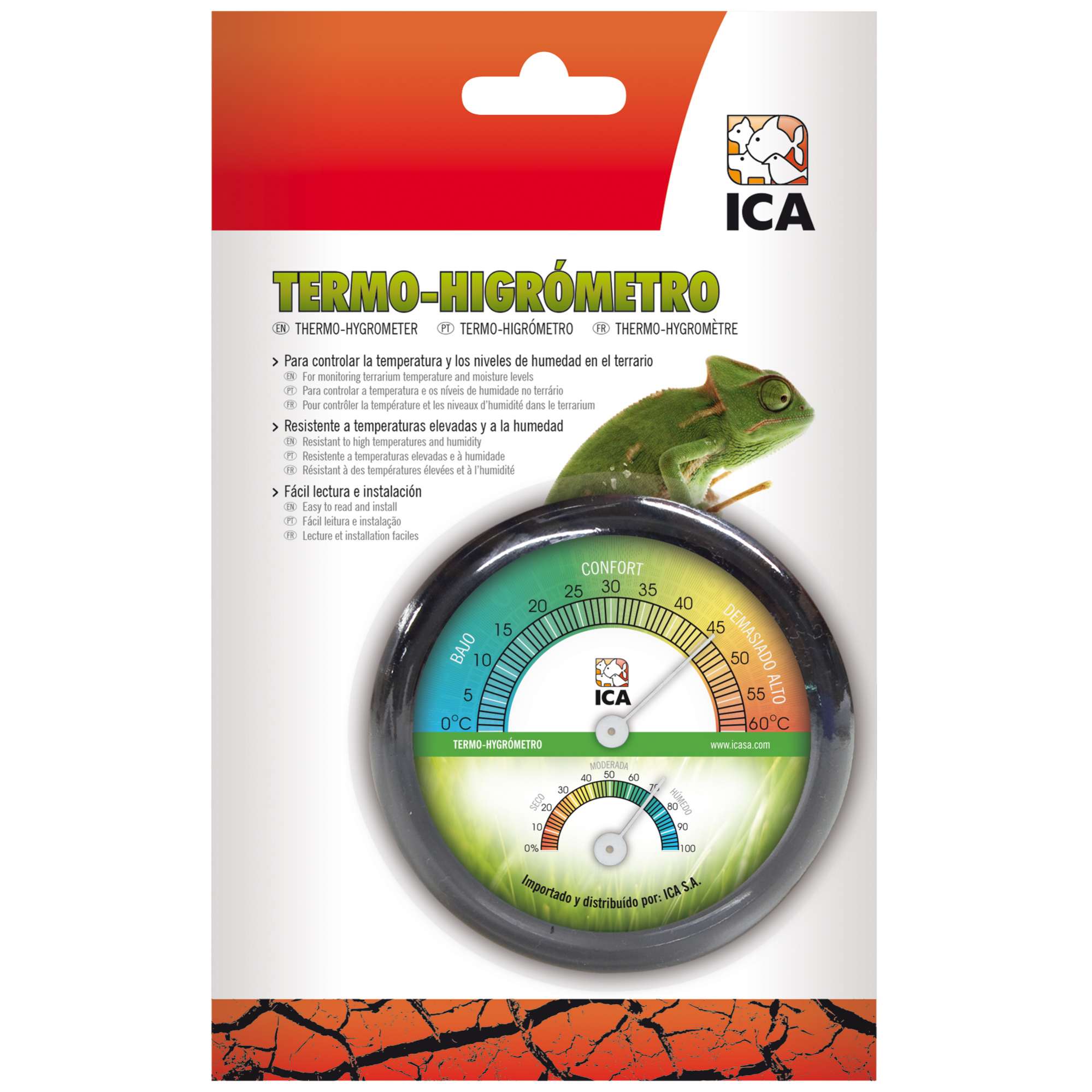 Controla la temperatura y la humedad de tu terrario con este termohigrómetro de fácil lectura e instalación. Es muy resistente a la humedad y a las altas temperaturas.
