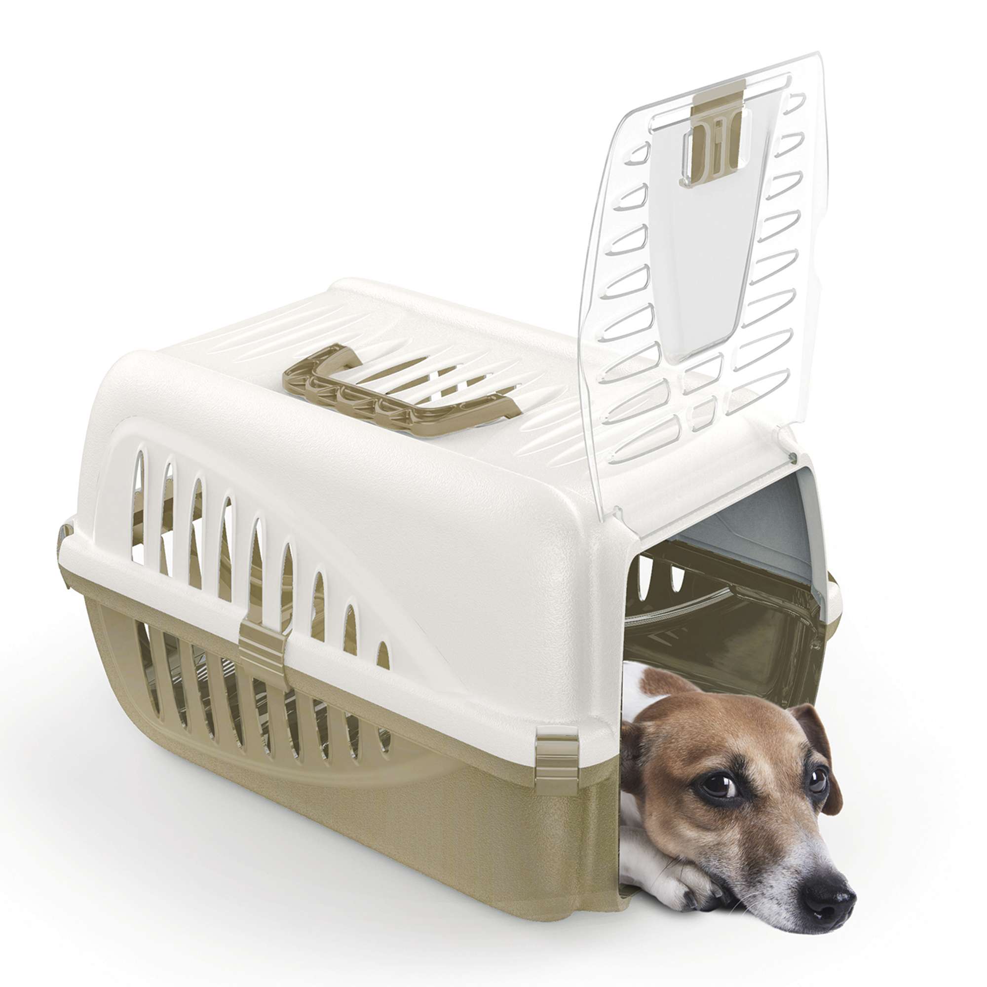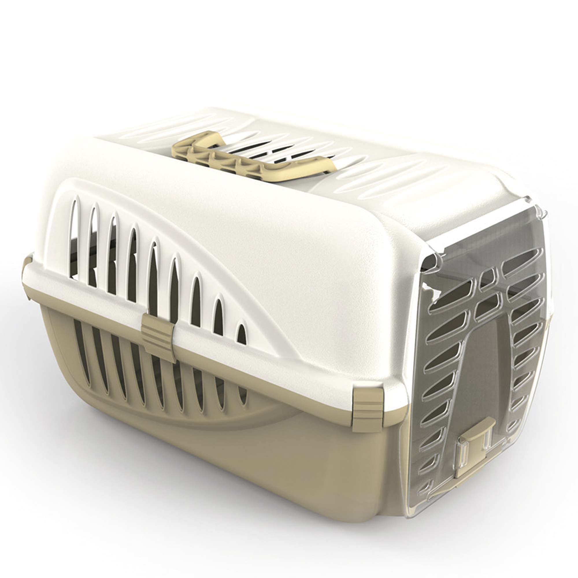 Transportín plástico, con asa muy resistente para su cómodo transporte, su puerta es transparente de gran dureza y las amplias aberturas le proporcionan una buena ventilación.