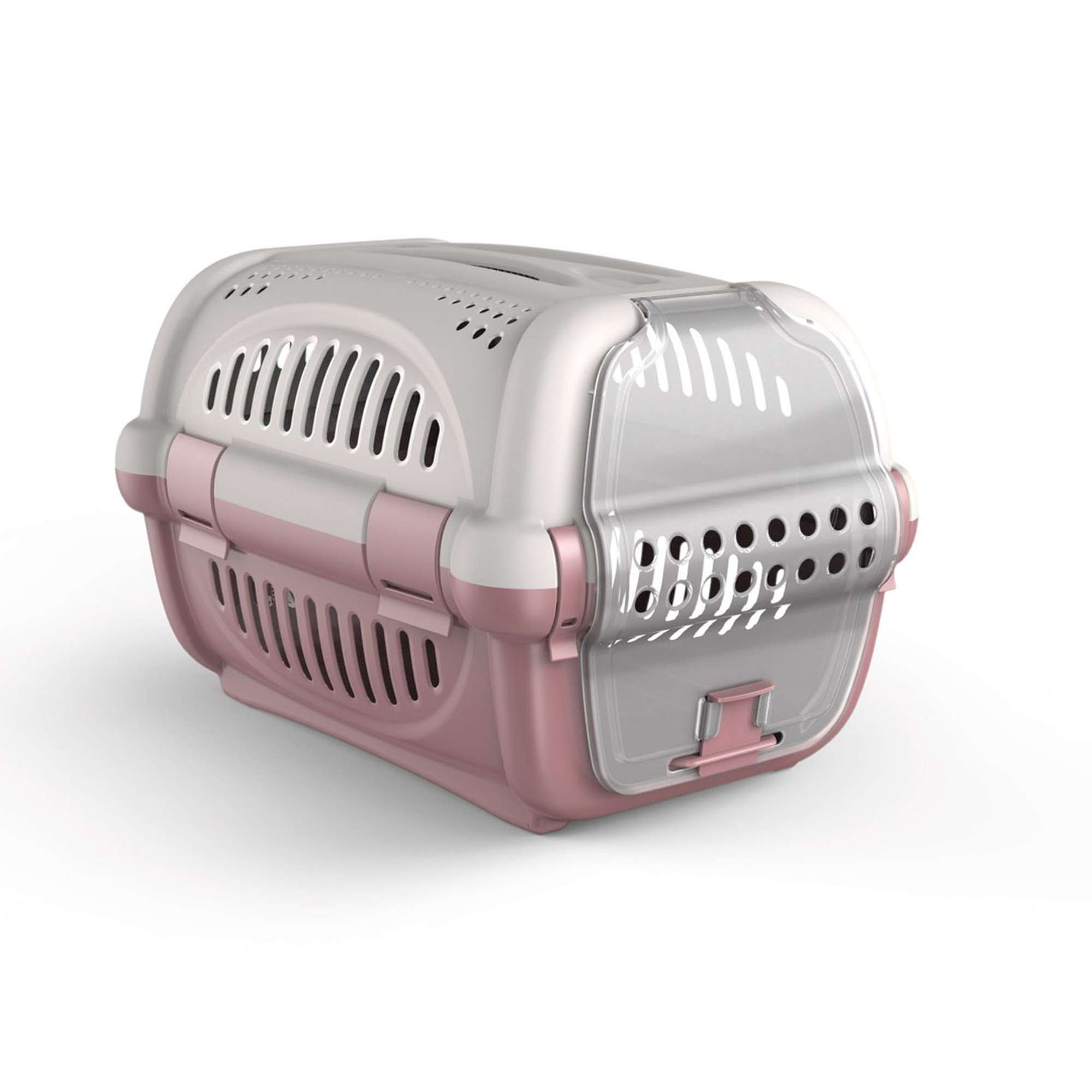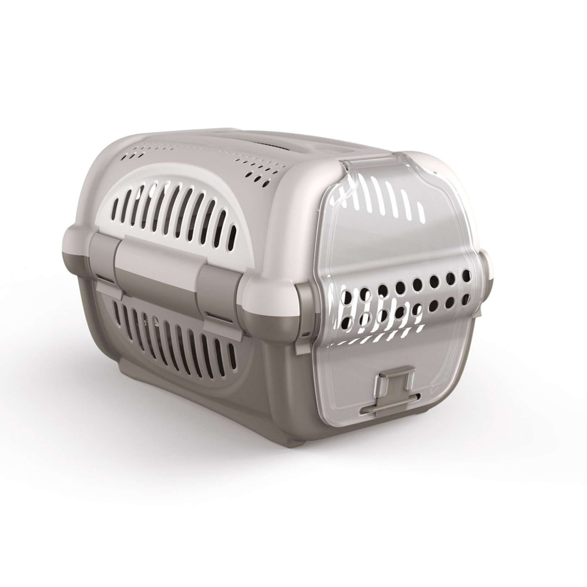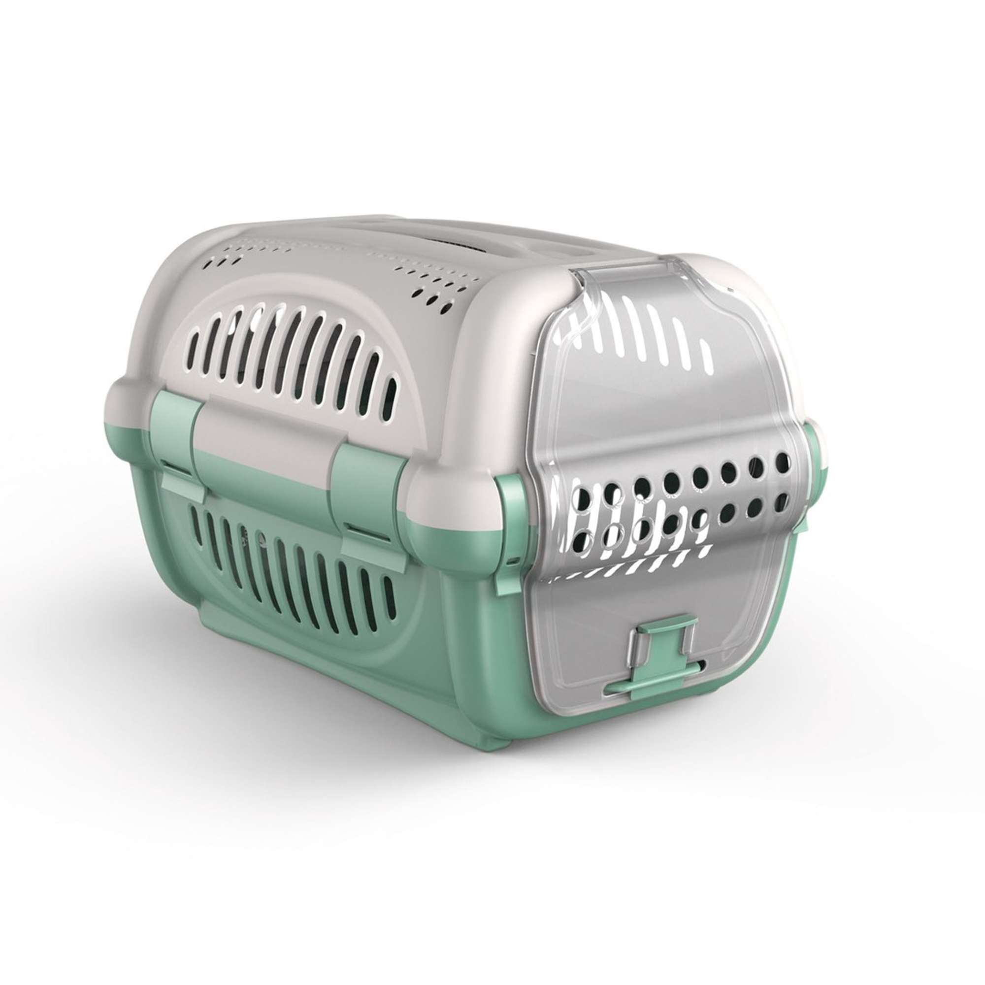 Trasportín plástico bicolor, con asa muy resistente para su cómodo transporte, su puerta delantera es transparente total, de gran dureza y cómoda apertura, las amplias aberturas le proporcionan una buena ventilación.