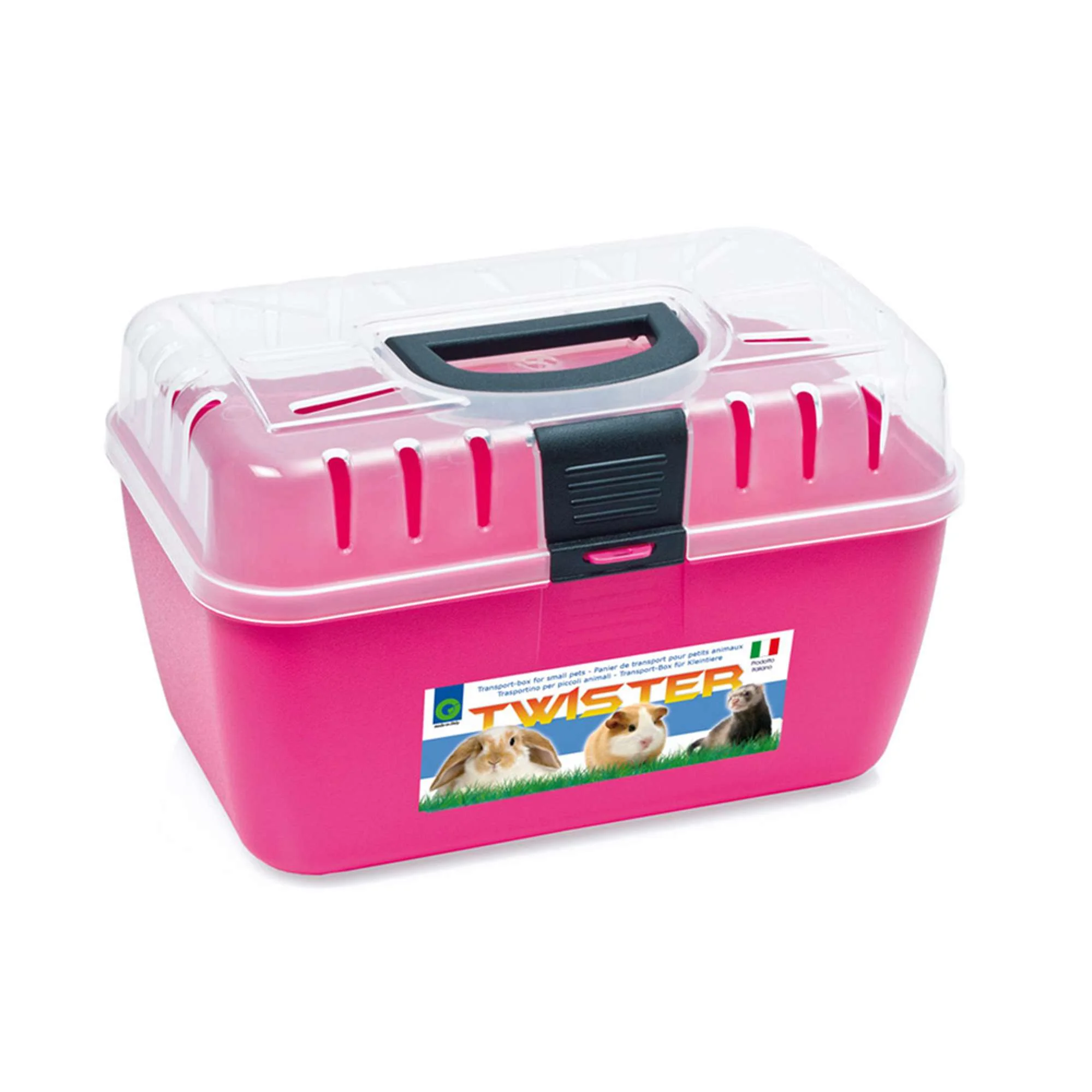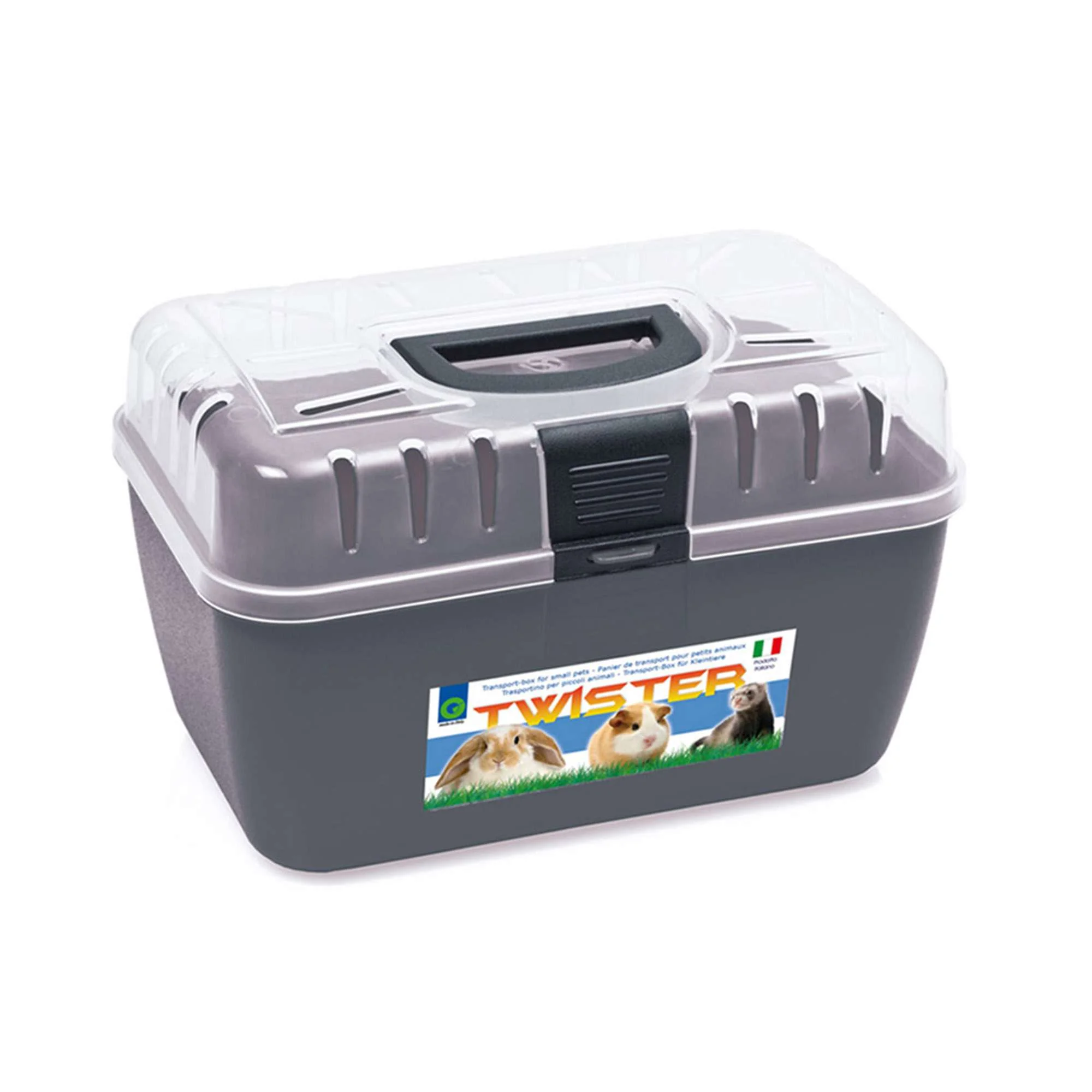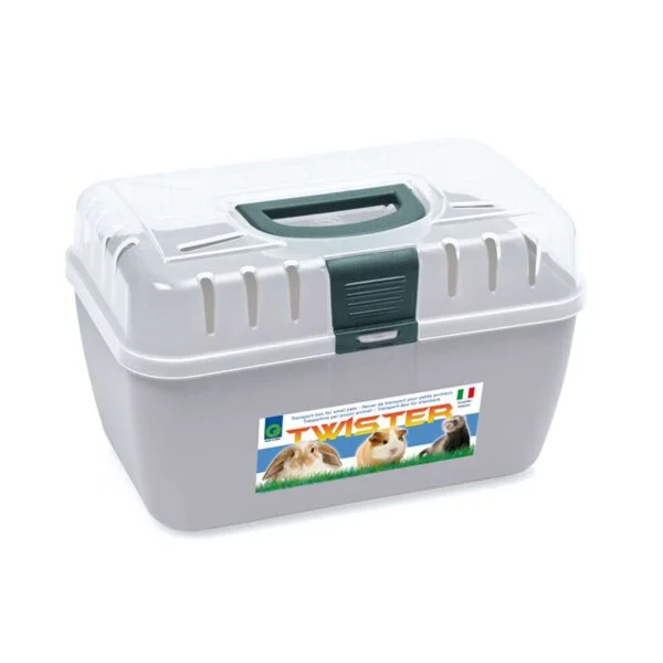 Transportín plástico fabricado con materiales de alta calidad. Ideal para el traslado de su mascota. Su parte inferior es opaca y la superior es transparente con grandes zonas de ventilación y de fácil apertura, con asa de sujeción cómoda y segura.